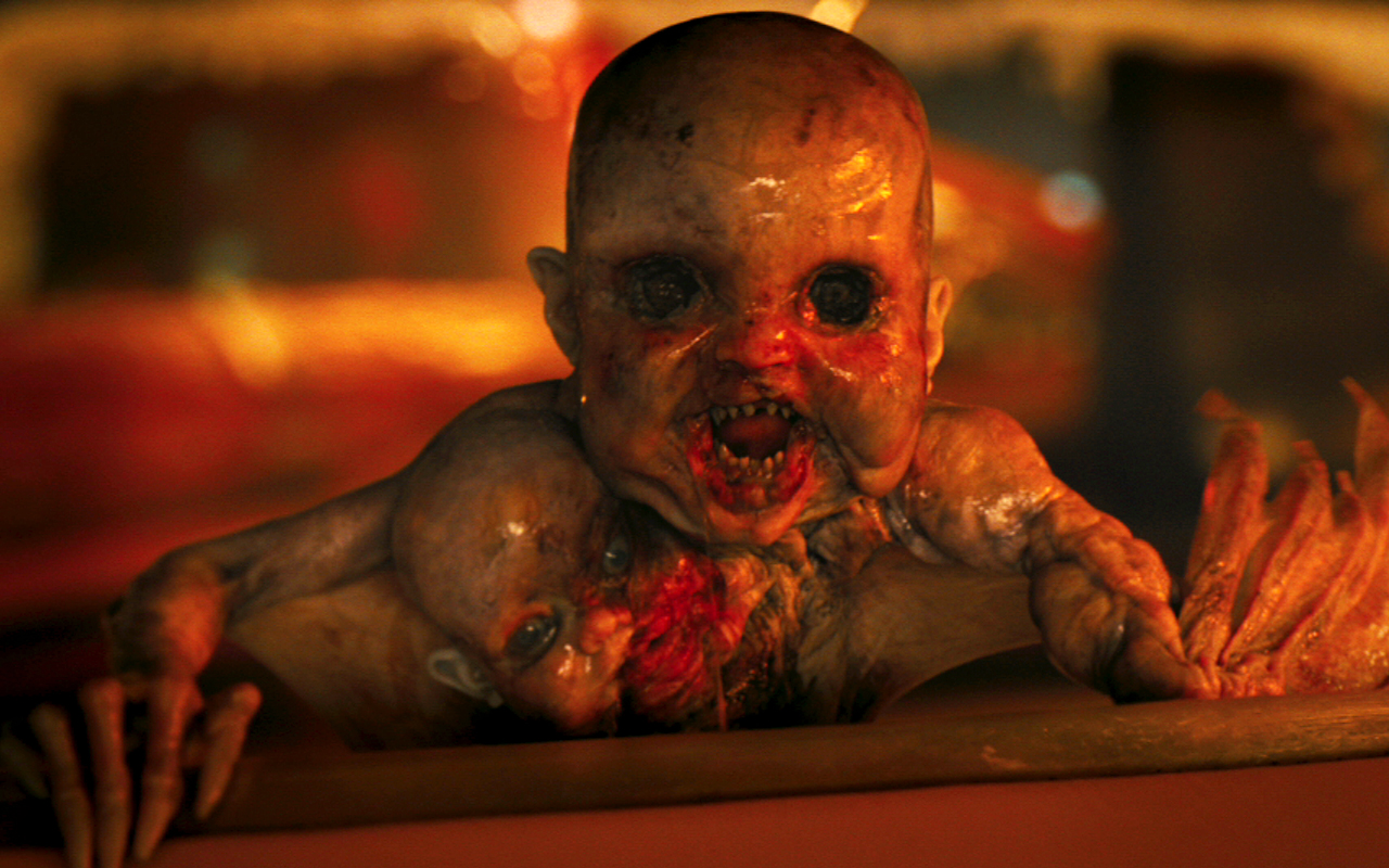 The premiere opens with a shocking sequence — one that immediately sets the tone for the rest of the show. A seemingly normal birth turns into a nightmarish massacre when a newborn baby becomes a creature of pure evil. It’s disturbing, graphic, and cinematic in a way television horror rarely dares to be.